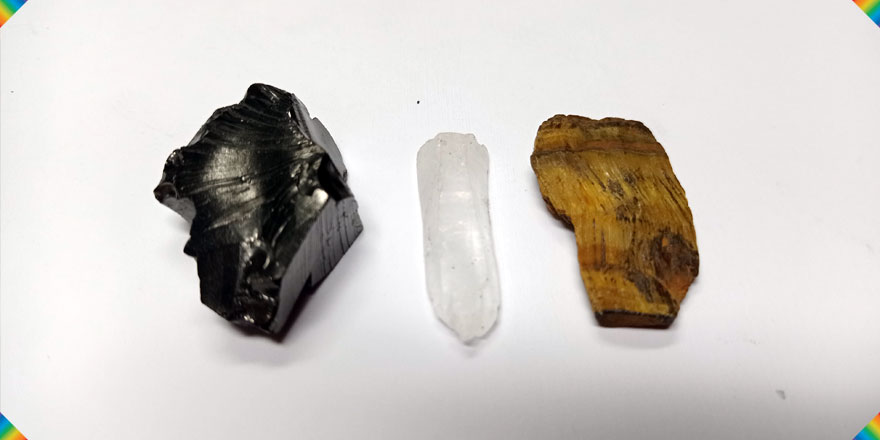 SHUNGITA, CUARZO CRISTAL Y OJO DE TIGRE
