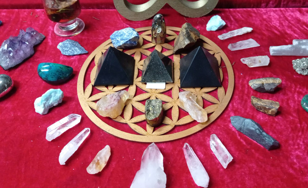 Altar de intenciones. Crear un altar con geometría sagrada y cuarzos es una forma hermosa de honrar tu espiritualidad, conectar con energías superiores y mantener…